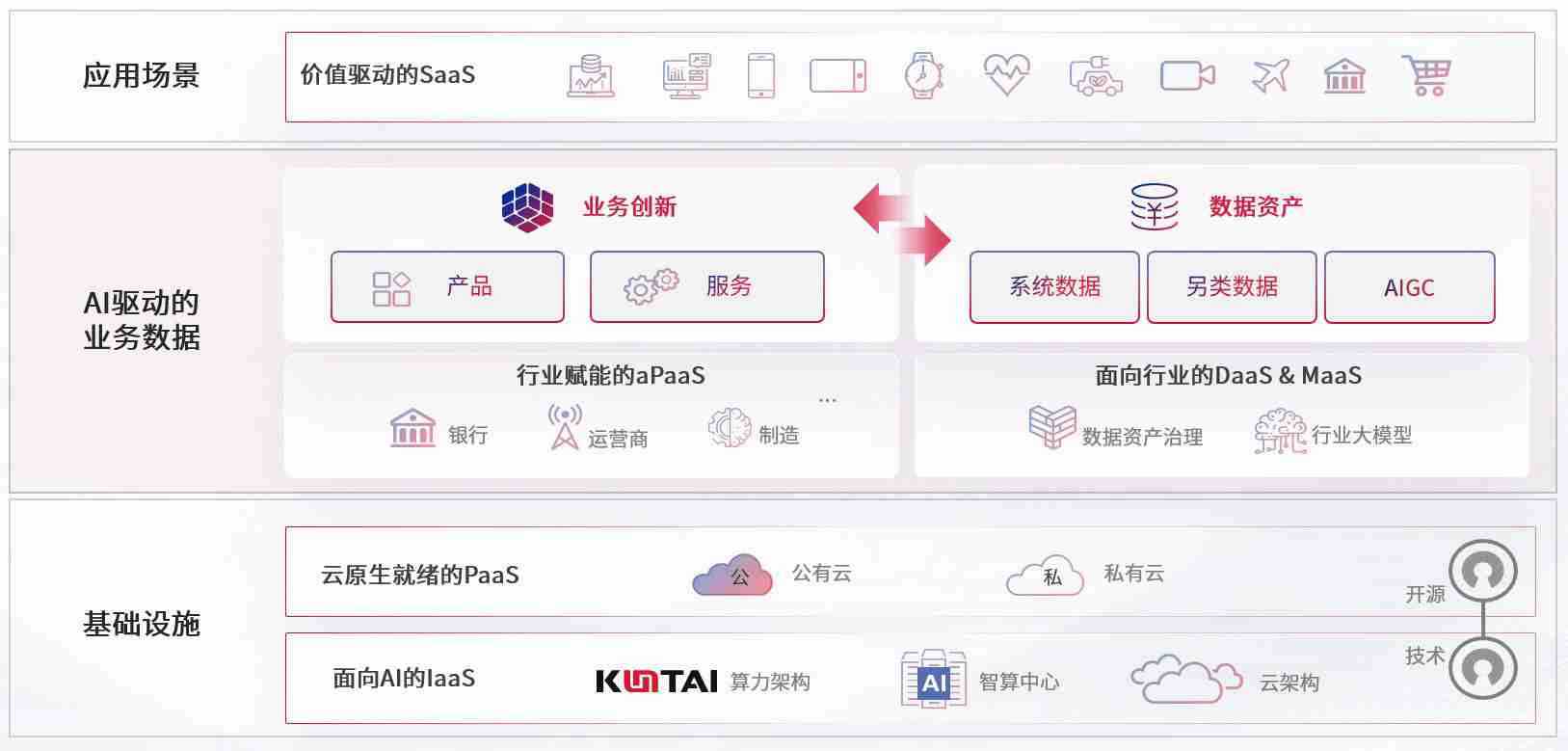 数字时代,,,围绕企业数字化转型的关键要素,,,伟德国际VICTOR1946数码开创性的提出数云融合战略和技术体系框架,,,着力在云原生、、数字原生、、、AI原生和信创产业上架构产品和服务能力,,为处在不同数字化转型阶段的快消零售、、、、汽车、、、、金融、、、医疗、、、、政企、、、、教育、、、运营商等行业客户提供泛在的敏捷IT能力和融合的数据驱动能力,,,,构建跨界融合创新的数字业务场景和新业务模式,,助力企业级客户建立面向未来的核心能力和竞争优势,,,,全面推动社会的数字化、、、、智能化转型升级。。